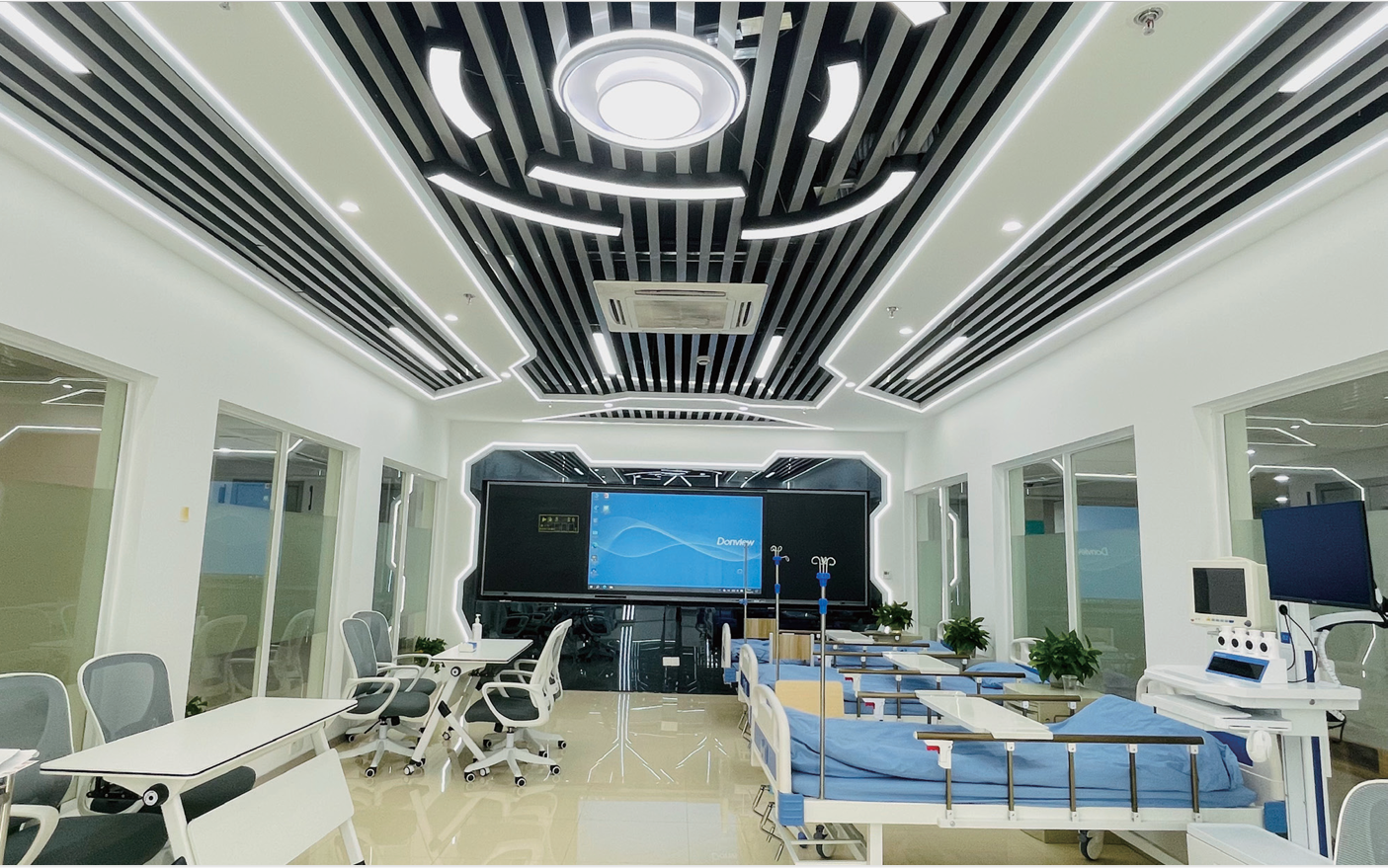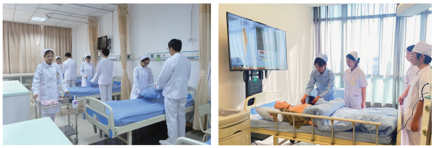 实训条件:建成“基础+专科+智慧+综合”四级实训平台,数智赋能教学。含护理技能中心、康复治疗区、智慧养老模拟舱、配备高仿真模拟人、智能康养设备、虚拟仿真实训系统。